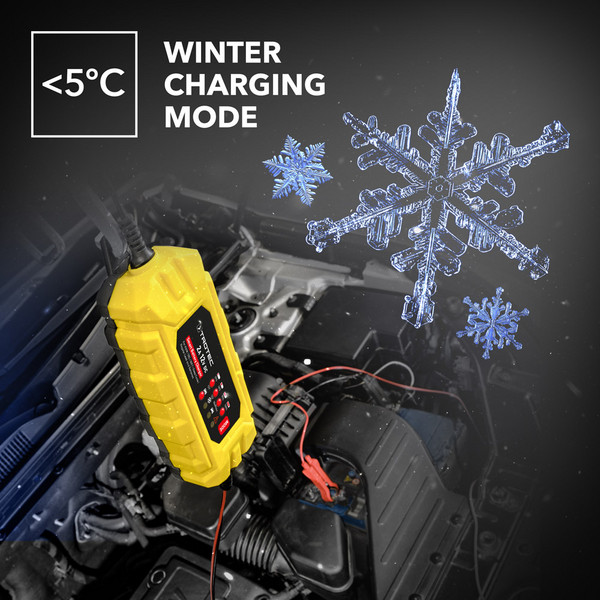 Winterlademodus für die schnelle Aufladung von 12-V-Batterien in kalten Umgebungen (-20 °C bis +5 °C) mit erhöhter Ladeschlussspannung.